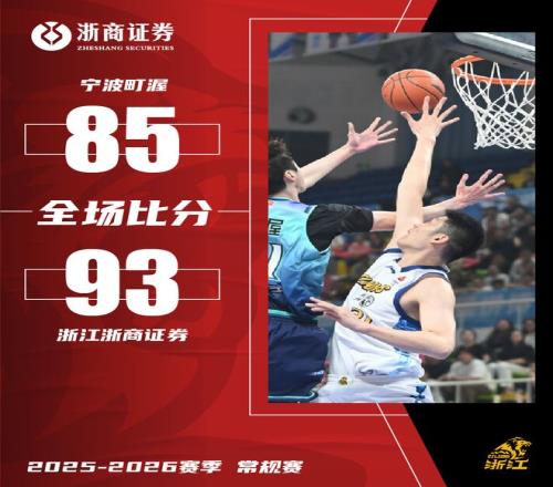 CBA常规赛第37轮,浙江浙商证券客场迎战宁波町渥,上半场宁波手感火热,半场投出了11中7的三分命中率,浙商证券凭借刚刚伤愈复出的布朗和胡金秋的发挥紧咬比分,第三节浙商证券在进攻端手感依然不好,被对手再次拉开比分,但第四节胡金秋和塔克爆发,两人末节合砍26分,最终,浙江浙商证券以93-85客场战胜宁波町渥。