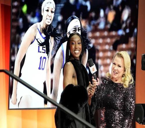 4月13日晚,纽约哈德逊广场The Shed场馆,金州瓦尔基里用首轮第8顺位选中一位特殊新秀——她不仅是LSU(路易斯安那州立大学)当家球星,还是Spotify月活听众超200万的说唱歌手。选秀夜当天,她老家佐治亚州萨凡纳的弗兰克·卡伦男孩女孩俱乐部里,200多人挤满大厅,有人当场落泪。