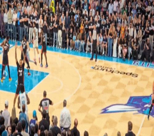 希罗先是一转身悬空超高难度3分命中