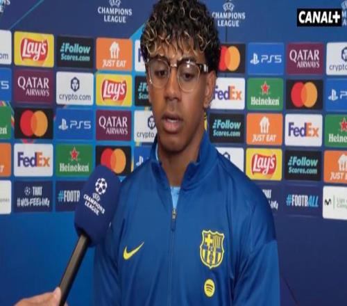 欧冠1/4决赛次回合,巴萨客场对阵马竞,亚马尔赛前接受了CANAL+的采访。