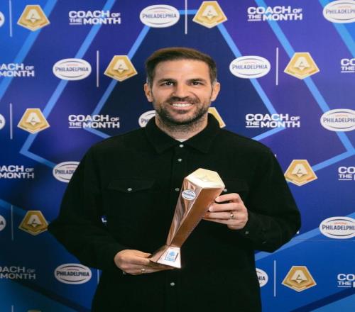 北京时间4月13日,在意甲第32轮科莫主场与国际米兰的比赛开始前,法布雷加斯领取了意甲3月最佳教练的奖杯。