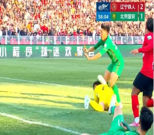 其次是中超联赛第4轮,北京国安对阵辽宁铁人的比赛当中,林良铭进球被吹,裁判判罚曹永竞犯规进球无效,辽宁铁人获得直接任意球恢复比赛,这次犯规判罚同样没有VAR介入,国安在赛后再次进行申诉,认为这次进球应该有效。足协在赛后评议认为曹永竞和对方门将的接触属于不可避免的接触,双方都没有犯规,裁判吹哨的时机存在问题,判罚曹永竞犯规错误。